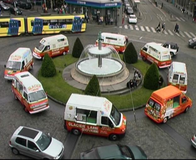 Ice-cream carousel encircling a strategic roundabout in Brussels’ centre, creating a s-creaming sound effect announcing the small pleasures of summer city life.
