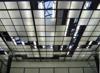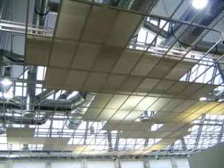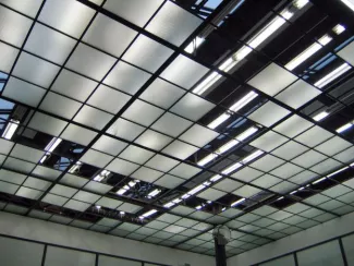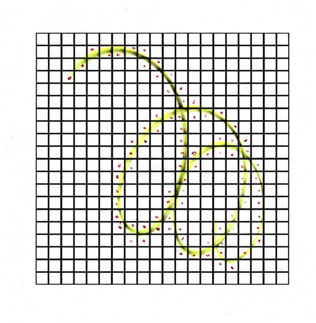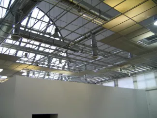Digitalized doodle dismantling the ceiling of the exhibition space.