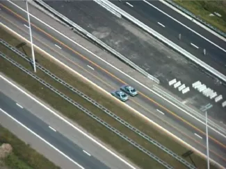 Mesmerising progress of two unmanned taxis on the highway, mysteriously drawn into each other’s force field, moving in tandem towards the border between Belgium and the Netherlands.
