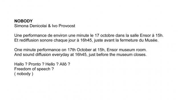Multisono ringtone concerto in Brussels’ Royal Museum of Fine Arts amidst the paintings of James Ensor, evoking both physical absence and interconnectivity. It was aired daily on the museum’s intercom system as imminent closing time message. Curated by Komplot.