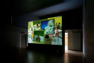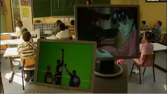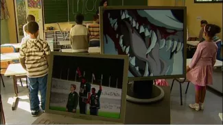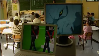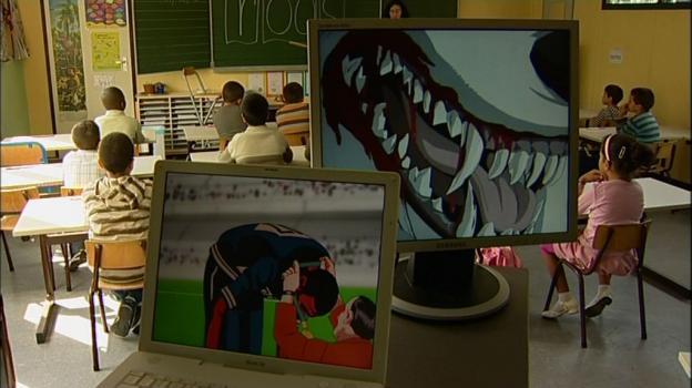 A video capture of the first Dutch reading lessons in a Brussels classroom, punctuated by animated screens that chart the contrary currents the pupils are going to navigate. (duration: 17m 22s)
