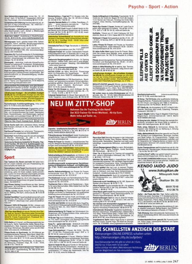 Advertisement in Zitty Berlin during the exhibition Architectures of Survival curated by Komplot for Sparwasser.