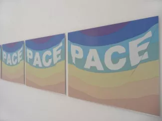 A series of 15 different vector drawn prints showing the fading, by the sunlight, on the flags of the Pace da tutti i balconi campaign in Italy, hung out in the streets in protest of the impending war in Iraq, and sometimes left hanging for many years afterwards.