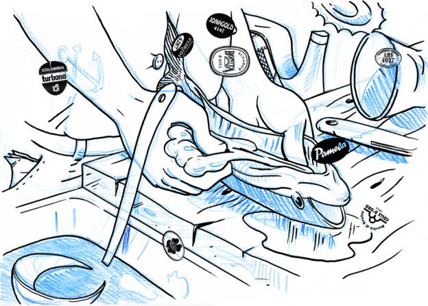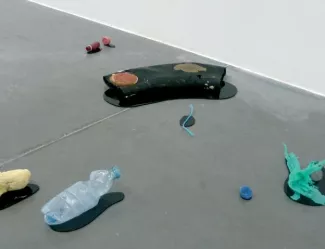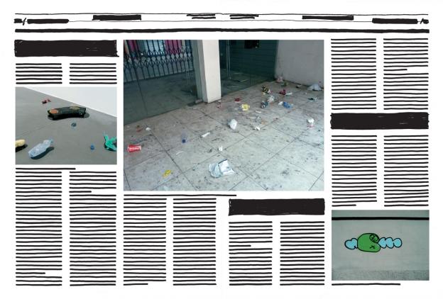 A fish and trash installation displaying multi-stage marvels of cartoon artistry that highlight and activate the incidental symbolism which pervades the humans’ inequitable dealings with the sea and its fauna.