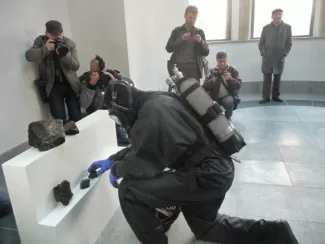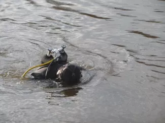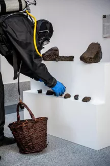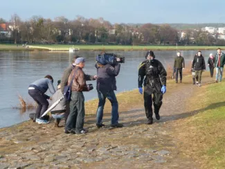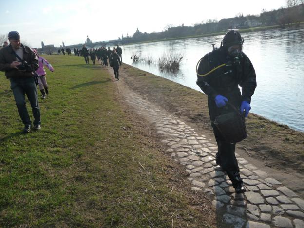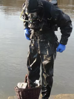 A professional frogman searching, collecting and presenting plausible evidence in order to establish the extra-artistic value and legitimacy of found objects.