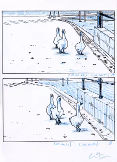 Original 172 drawings for the animatic "Hello, are we in the show?".